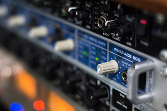 2 micrófonos Shure SM7, 1 micrófono Sennheiser e609 silver, 1 micrófono AKG D112, así como diferentes micrófonos de condensador de diafragma largo. Los micrófonos y las técnicas de microfonía serán escogidos según los requerimientos de cada proyecto, así como los preamplificadores donde serán conectados.